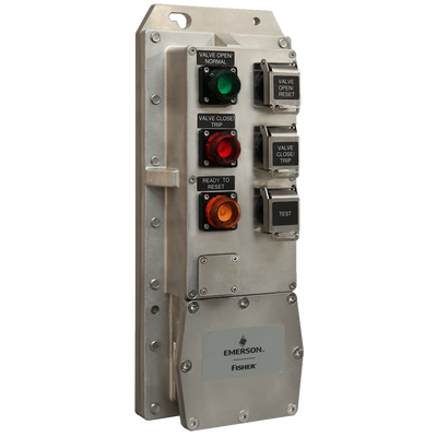 The LCP200 local control panel is used with the HART® communicating DVC6200 SIS digital valve controller.This panel is used to manually open, close or test a safety shutdown valve using three protected pushbuttons. The LCP200 also provides three lights to visually indicate if the valve is open, closed or ready to reset.
